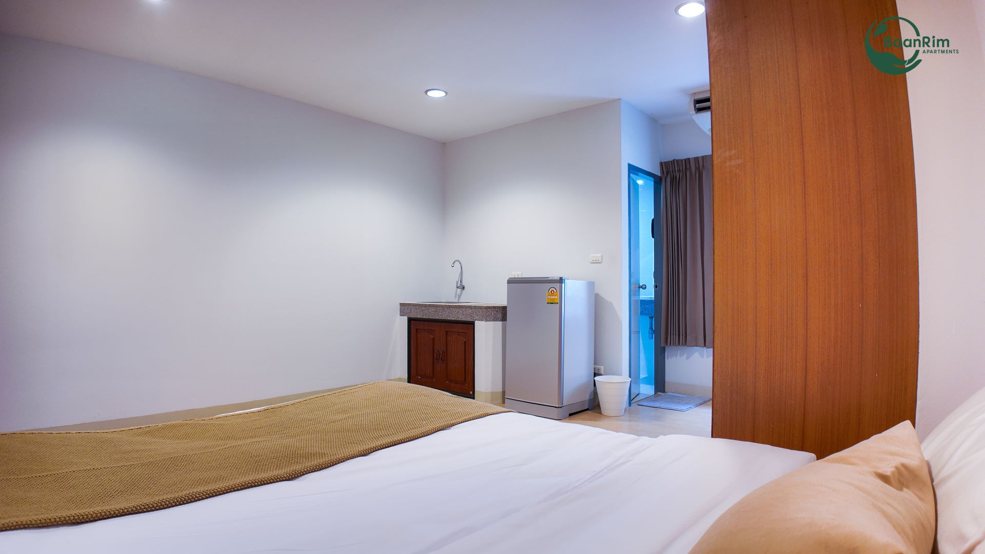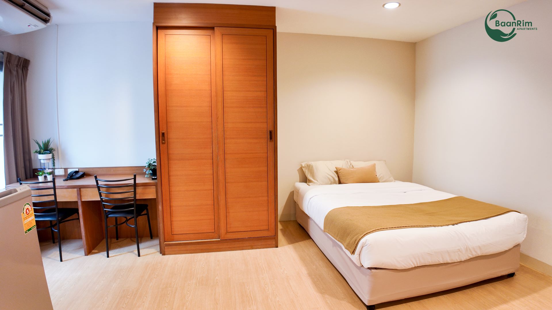 ห้องพักขนาดเริ่มต้น เฟอร์นิเจอร์ครบพร้อมเข้าอยู่ พร้อมระเบียงส่วนตัว